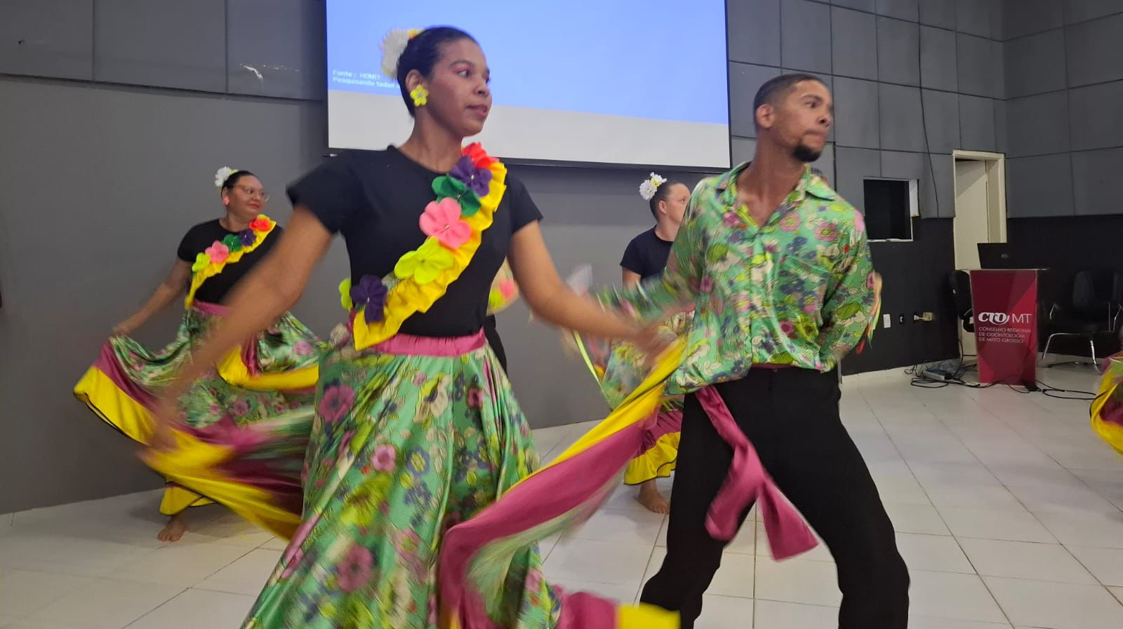 Na manhã da última sexta-feira (17), o grupo de dança tradicional cuiabana de siriri da APAE Cuiabá Flor de Margarida, subiu ao palco do “1.º Simpósio de Pacientes com Necessidades Especiais” promovido pelo Conselho Regional de Odontologia de Mato Grosso (CRO‑MT). O evento tinha como meta apresentar inovações, possibilidades e novas abordagens voltadas a pessoas com deficiência ou com necessidades especiais — e a participação da APAE Cuiabá foi parte central desse objetivo.